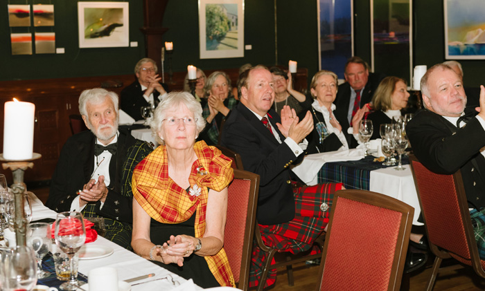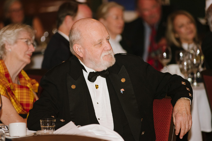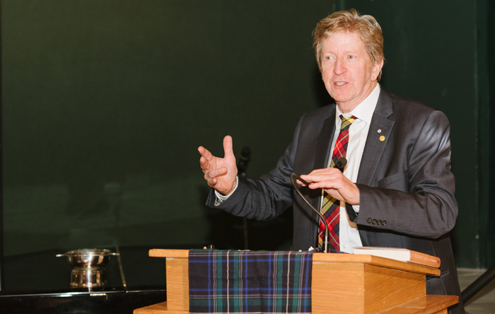Treasurer David Thompson on stage with to speak about the Foundation's recent work which included a $50,000 donation to support an undergraduate History Co-op Position in Scottish Studies at the University of Guelph.
