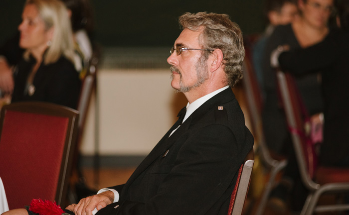 Professor Kevin James on his way to the stage. Kevin is Scottish Studies Foundation Chair & Professor of History at the University of Guelph.