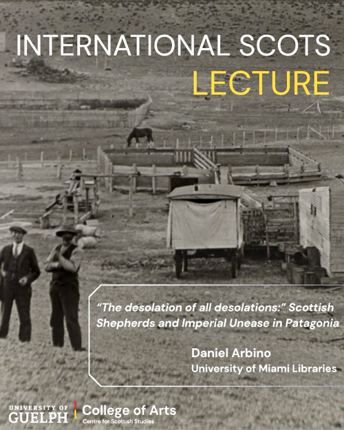 The Centre for Scottish Studies at the University of Guelph invites you to attend the latest International Scots Lecture on Monday, March 30, 2026 at 3 p.m. (EDT) on Zoom. Dr. Daniel Arbino (University of Miami Libraries) will present “The desolation of all desolations:” Scottish Shepherds and Imperial Unease in Patagonia. The event is free and open to all. Details have been posted here.