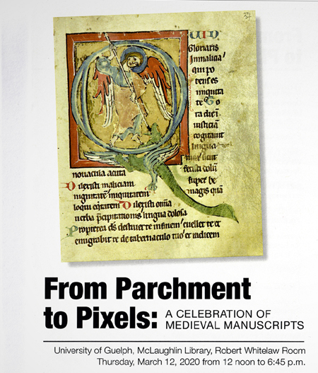 Experiential learning is all the rage at universities across Canada. The display of medieval exhibits involves extensive preparation with regard to researching, organizing, and planning. The Scottish studies courses offered at Guelph University have given our graduate students skills which they can put on their resume. More than this, these courses have given our students the path for a love of learning. The display of artifacts underlines the importance of the physical manuscript for appreciating and understanding history. Working with an original manuscript, our students experience an emotional connection which fuels their desire to explore and discover more about the past. This is all the more important, in an era when enrollment in history at universities has been declining. The greater benefit of examining these manuscripts is to learn about the history of art and the diversity of languages.
