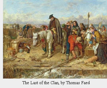 Hundreds of thousands of Scots emigrated to Canada in the 18th and 19th centuries. Gaelic was spoken as the first language in much of "Anglophone" Canada. It became the third most commonly spoken language in Canada and is still spoken in Cape Breton. Importantly it was the cream of Scotland who moved here. Sadly, the famous painting by Scottish artist Thomas Faed, called "The Last of the Clan" shows the aged, weak and weary last members of the clan left behind on the jetty in Scotland, as a ship of settlers leaves port.