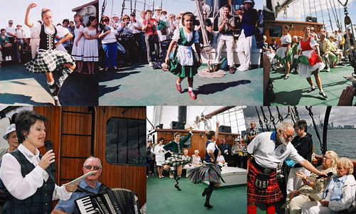 Shortly after, it was decided to commemorate the arrival of Scots pioneer ship "The Hector" which arrived in Nova Scotia in 1773. This was done by chartering Canada's largest sailing ship "The Empire Sandy" to provide a unique opportunity for anyone interested to share the experience of a voyage on a tall ship under full sail in an attempt to recapture the spirit of Canada's pioneers. With lots of tartan in evidence, folk singers, dancers and the sound of the pipes accompanied and entertained guests with songs and music from Scotland and Canada. The event was hugely popular and has been held every year since.