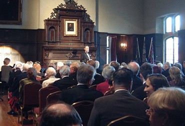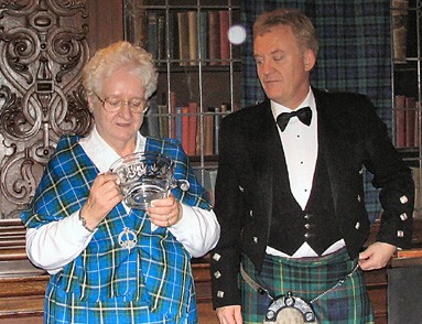 Jean Watson reads the inscription on the specially engraved quaich presented by Hugh Boyle