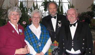 Audrey Manzer and Jean Watson with Douglas Gibson, President St. Andrews Society of Toronto and Alastair McIntyre (Electric Scotland)