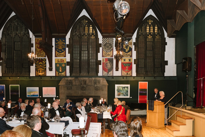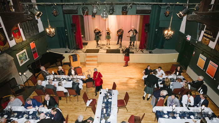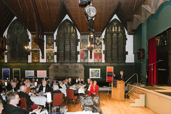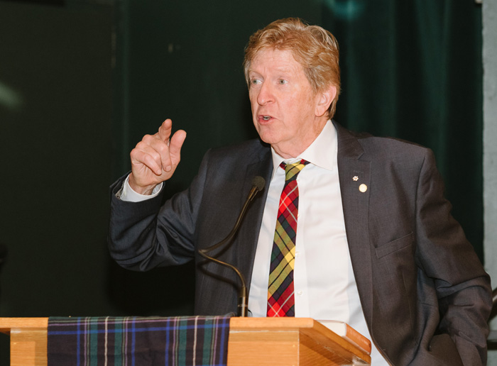 Treasurer David Thompson on stage with to speak about the Foundation's recent work which included a $50,000 donation to support an undergraduate History Co-op Position in Scottish Studies at the University of Guelph.