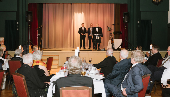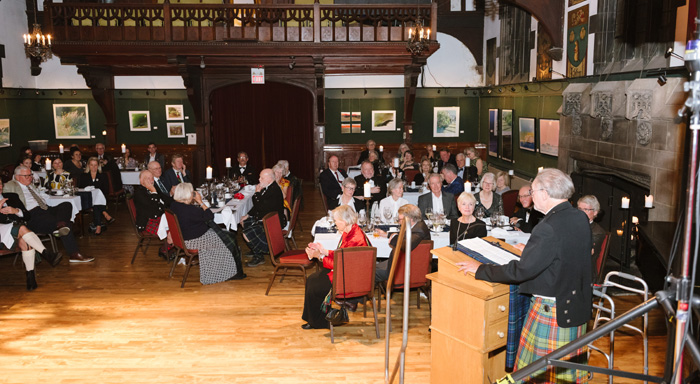 Master of Ceremonies Doug Gibson introduces R.H. Thomson, Scot of the Year 2023