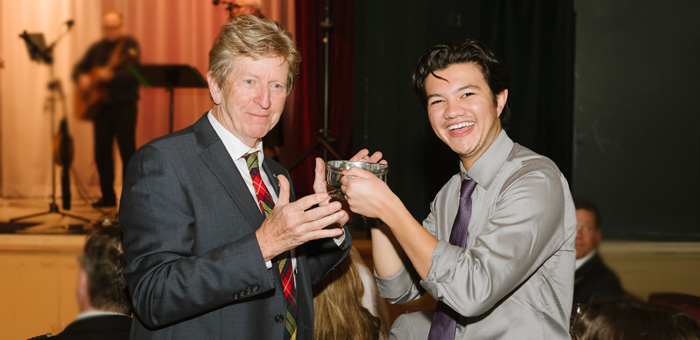 Professor Kevin James thanks the Scottish Studies Foundation for the $100,000 donation which will be added to its existing large and growing endowment fund to provide critical assistance to students and encourage scholarship for generations to come.