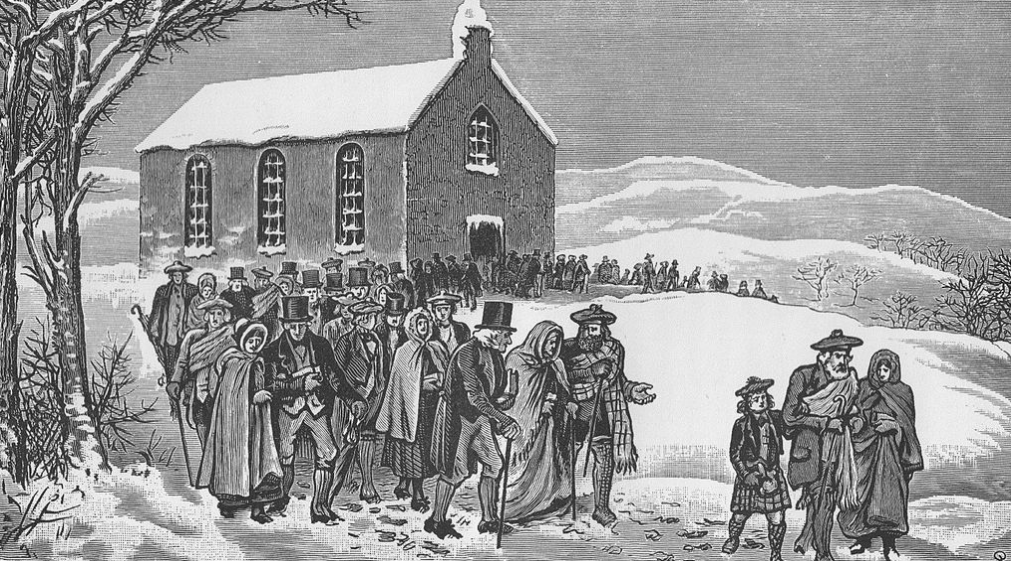 Parishioners walk out of church in protest at the unpopular appointment of a minister in the parish of Marnoch, Strathbogie in 1841